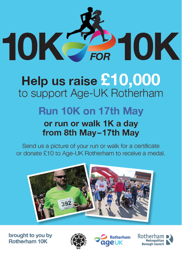 In an attempt to provide encouragement and a framework to help people start and keep running, we have decided to organise a Virtual 10K event to enable people to complete a virtual 10K, and to also help Age UK Rotherham continue their work to help the older and vulnerable people get the help & support they desperately need and deserve.